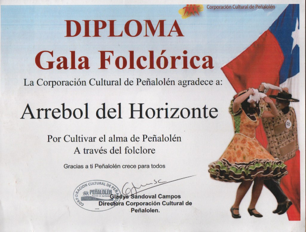 Fundada en Peñalolén el año 2006, la agrupación folclórica Arrebol del Horizonte rescata cultura y tradiciones urbanas de la capital y la costa central de Chile. Con más de 20 músicos y bailarines en escena, se caracteriza por su tono festivo y la picardía de sus personajes, acorde con las temáticas, vestimenta y canciones de su repertorio.